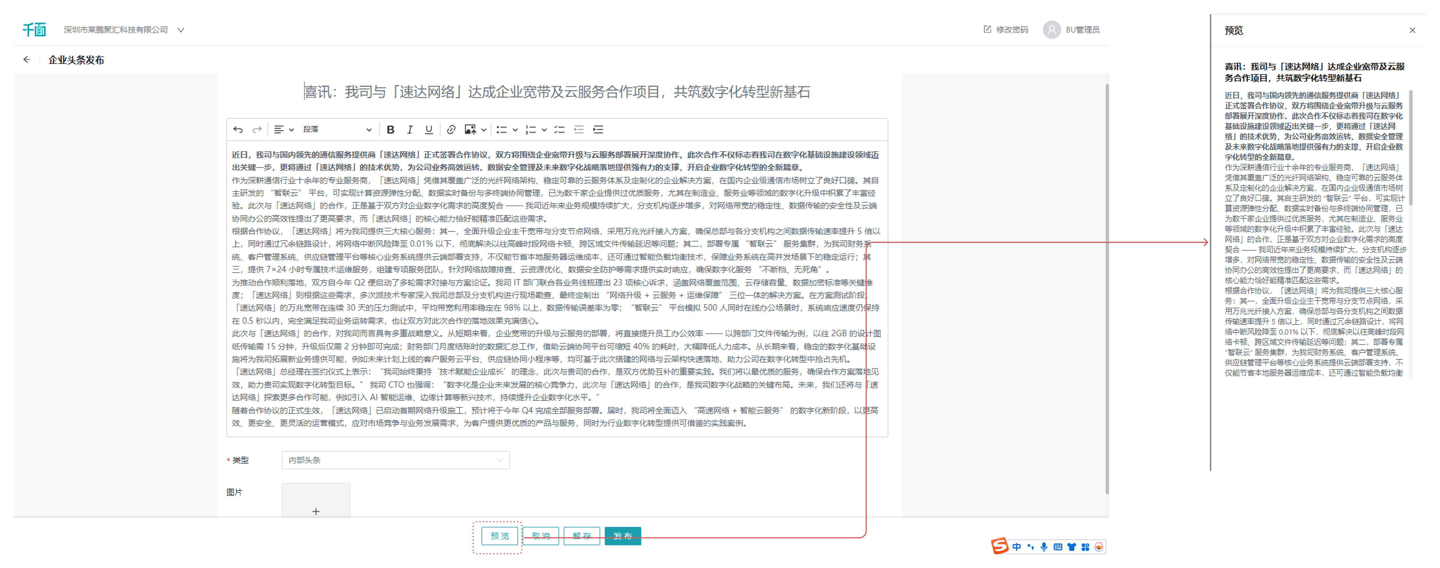 操作路径:制度头条设置>企业头条>新增文章