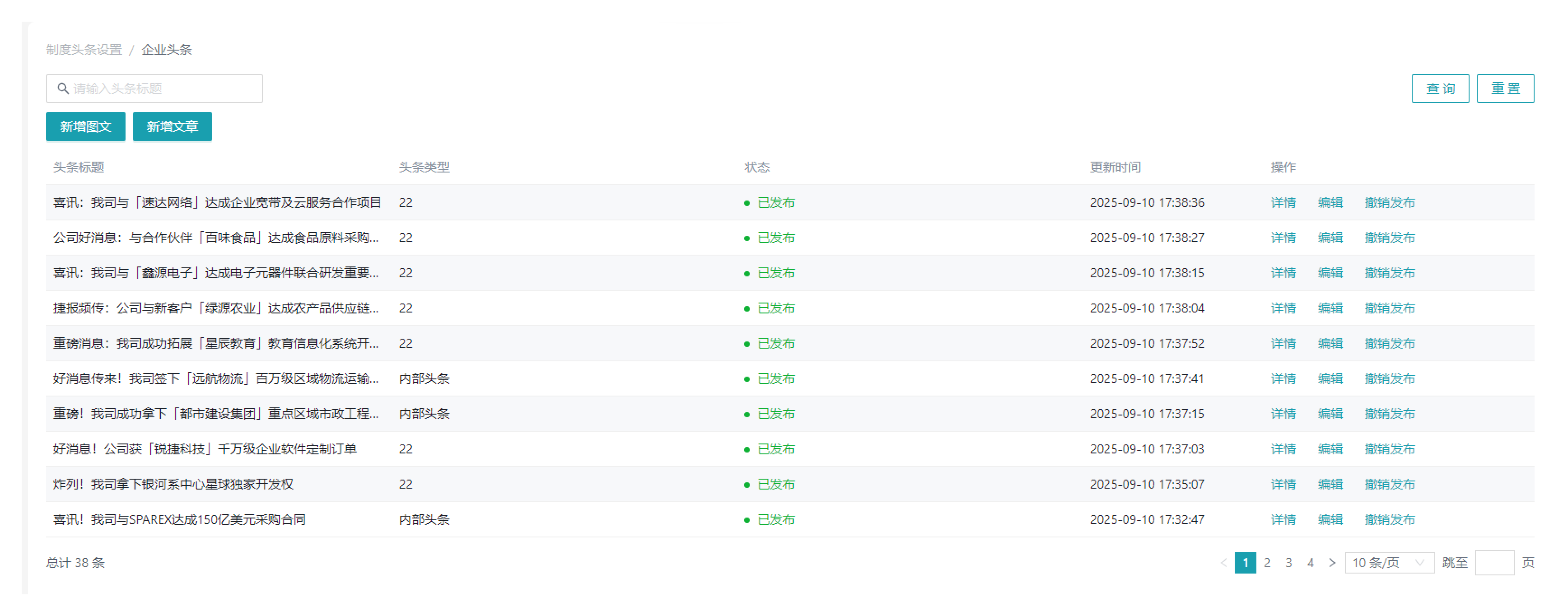 已提交的头条发布记录,可在企业头条查看进度及已发布内容,并可进行编辑、撤销发布等操作