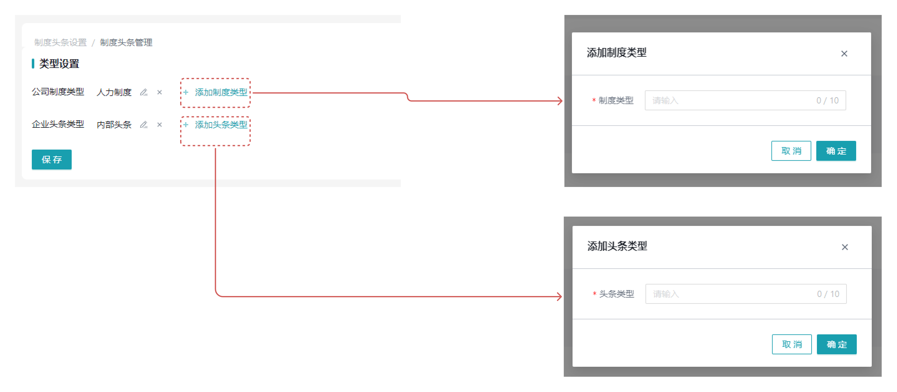 公司制度和企业头条的类型名称需要保持唯一,不可创建相同名称的类型。